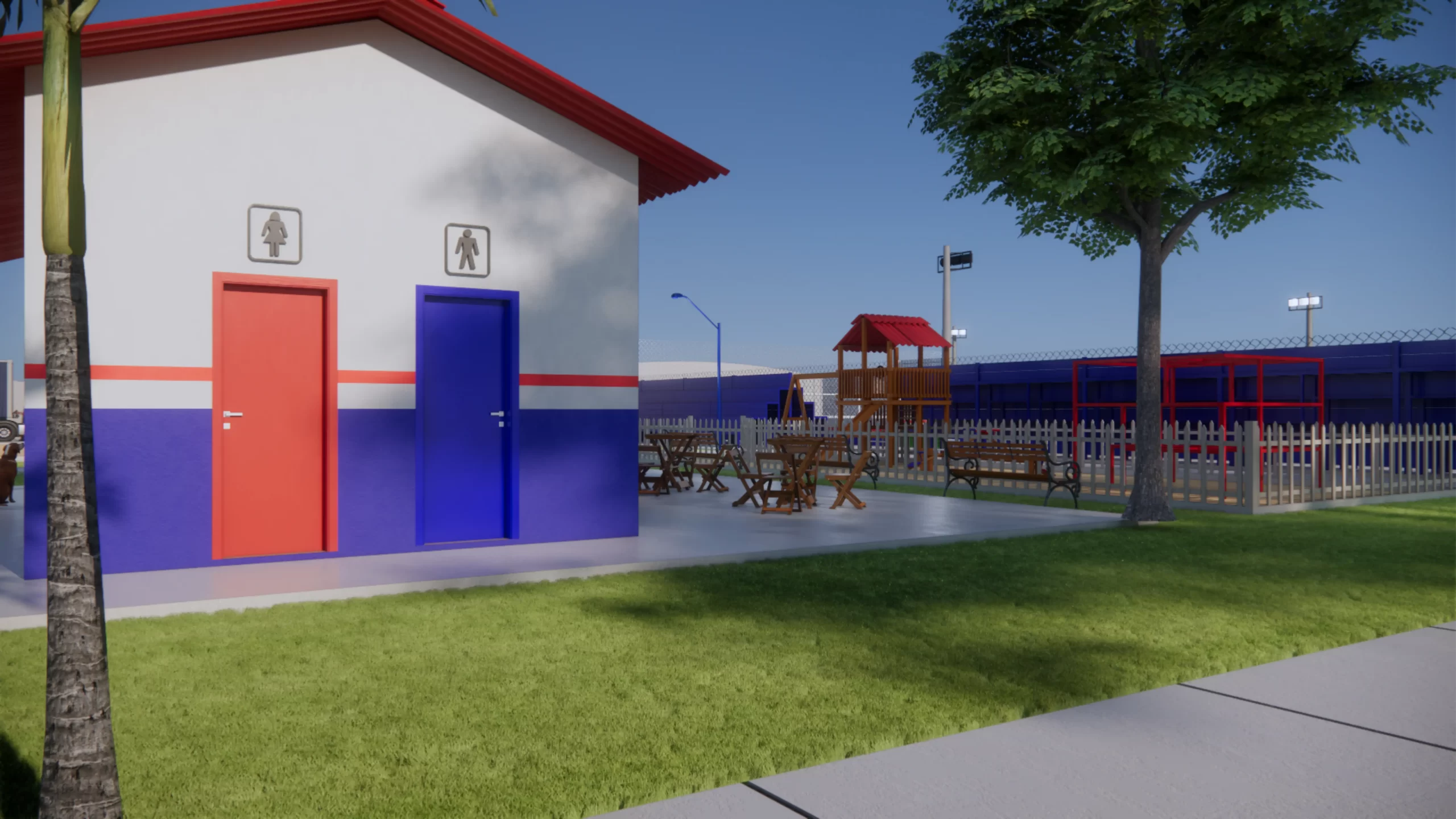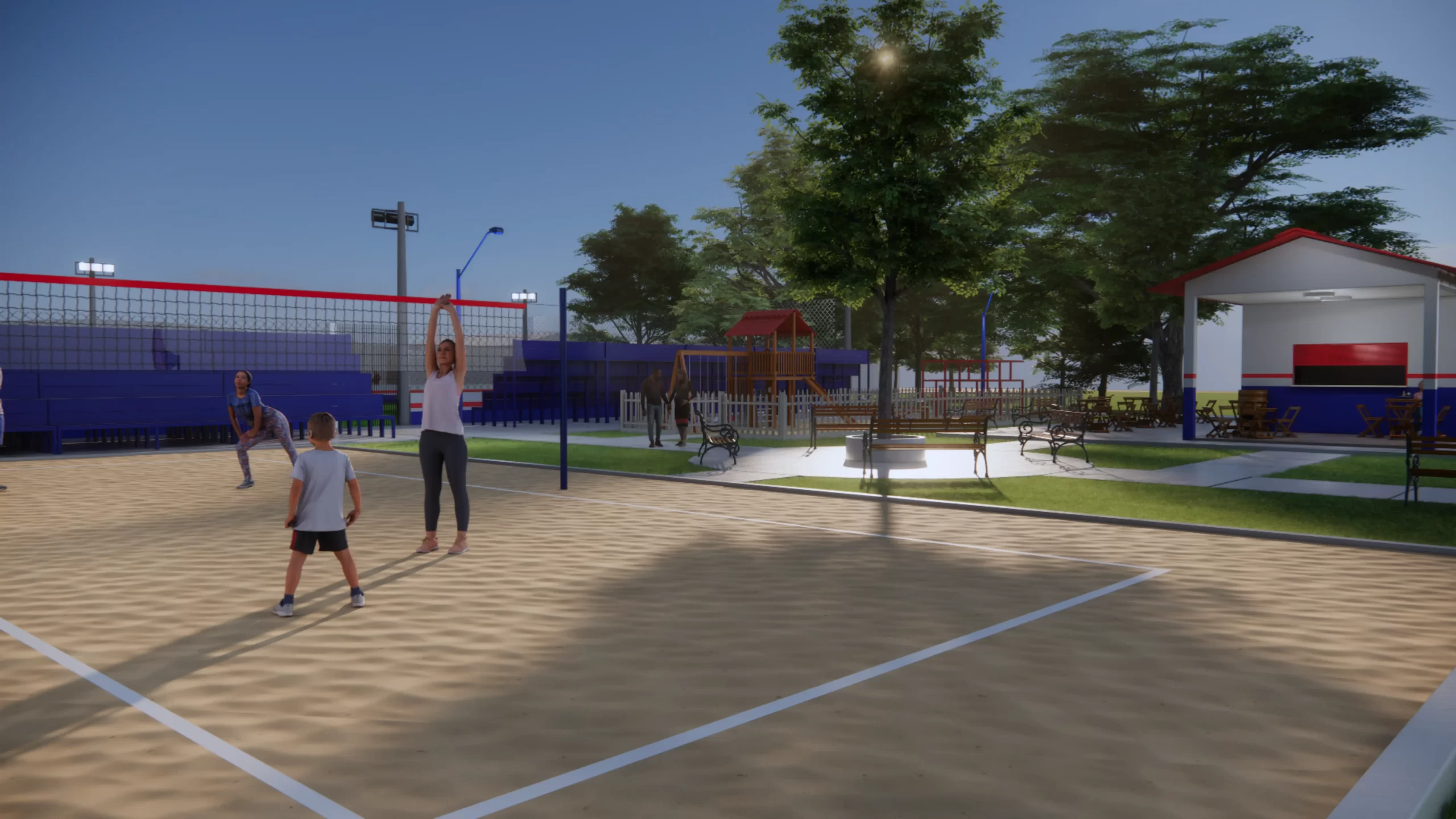 Projeto e construção de uma Praça na comunidade “Caracol” em Trairão-PA. O projeto da praça foi desenvolvido em um terreno de 3.173m², contemplando um Campo de Futebol em grama sintética, playground, banheiros, lanchonete, Quadra de Areia – para Vôlei de Praia, Futvolei, Beach Tennis, além de calçadas e paisagismo.